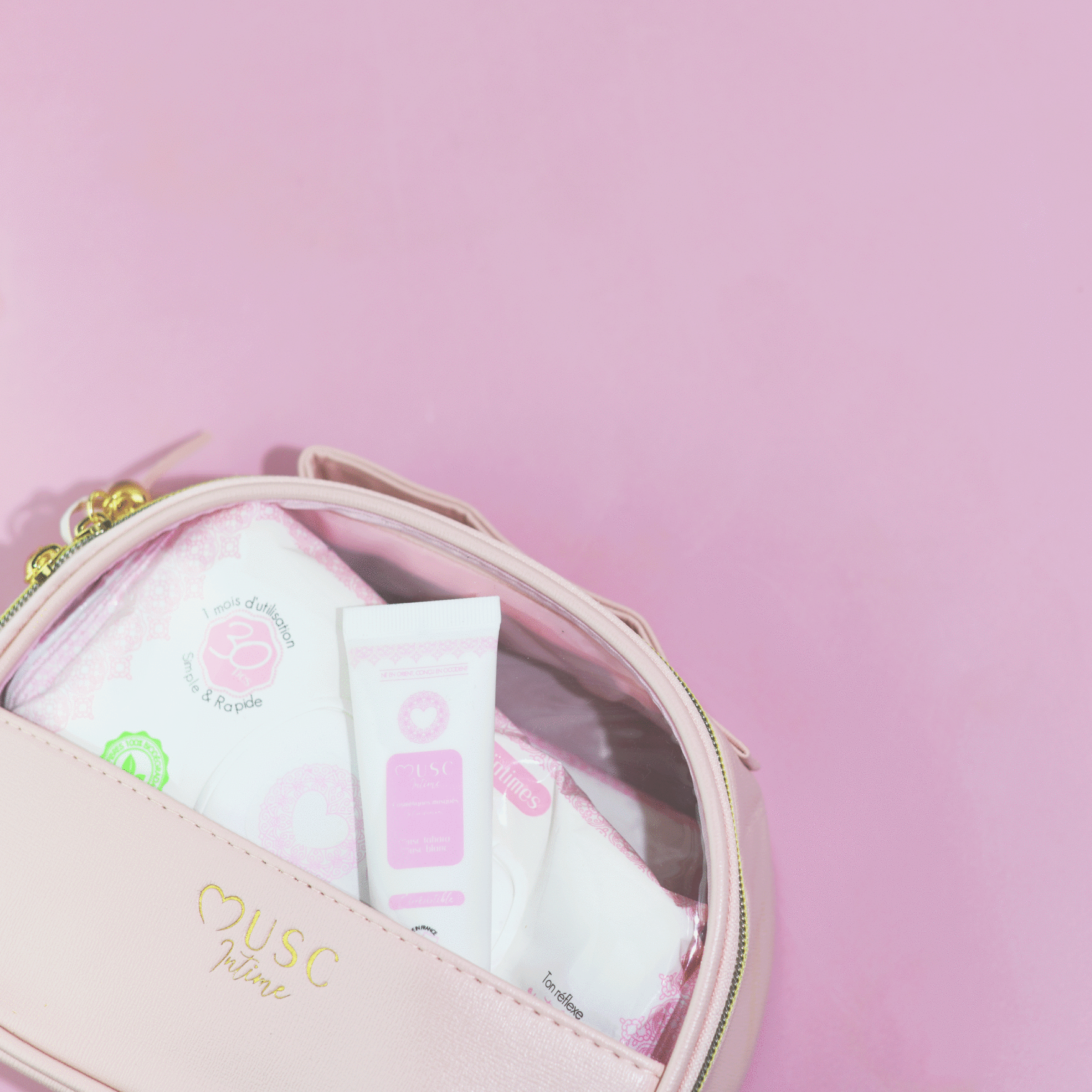 La trousse Musc Intime peut posséder tout ce que tu as de plus intime, c'est ton jardin secret, la complice de ton intimité.